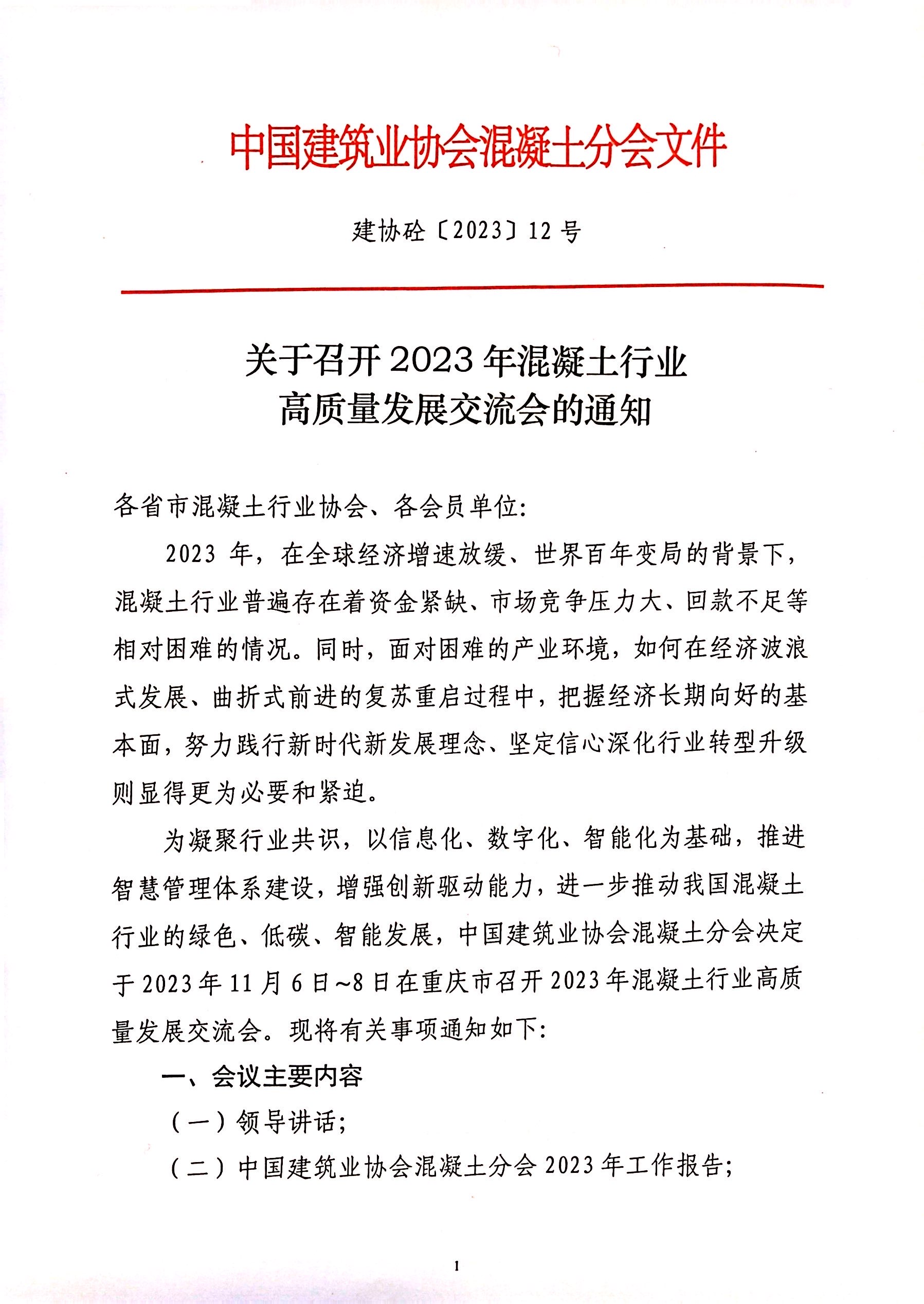 關于召開2023年混凝土行業高質量發展交流會的通知