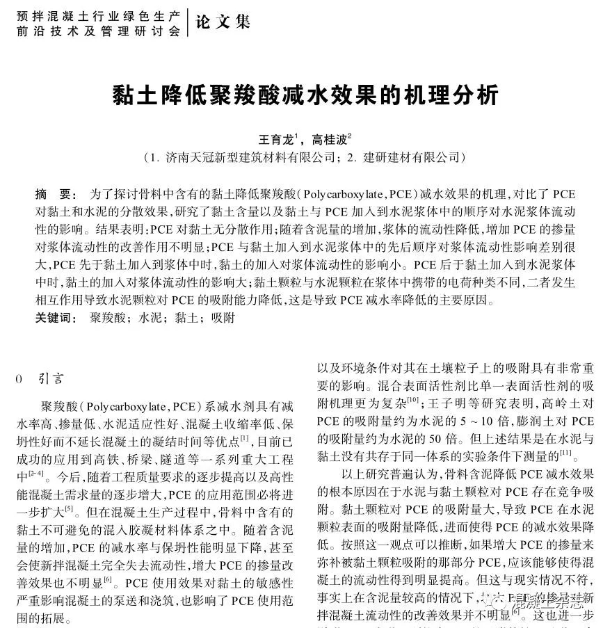 黏土低聚羧酸減水效果的機理分析