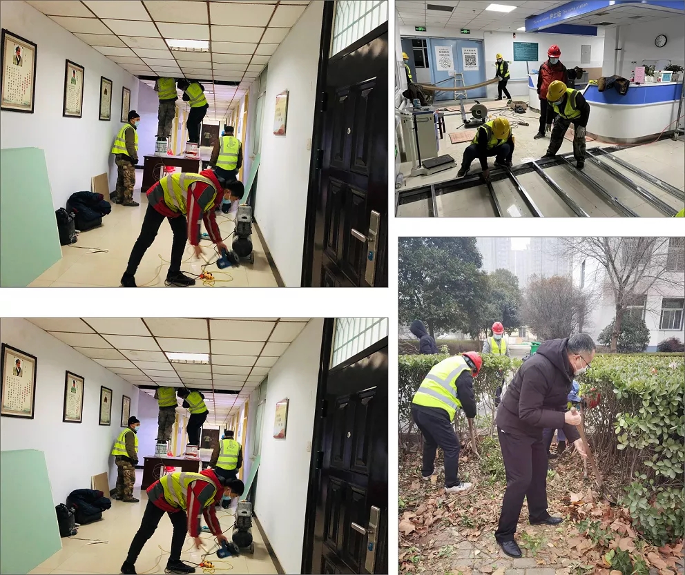 突擊隊克服疫情、交通管制、多點施工不便統籌等影響,多方協調、緊急調配人員和物質,合理分工迅速鋪開作業面,科學指導工人作業,連夜快速組織實施,各工種穿插作業順利銜接,嚴控施工質量。12日13點開始轉戰四個“戰”場,行政樓、1號、2號病房樓及綜合樓,專家組過程研判中,不斷提高標準,追加改造部位,及時按標準調整組織。