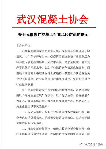 武漢混凝土協會發布預拌混凝土行業風險防范提示