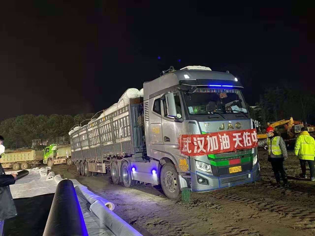 東方雨虹首批3萬多平米HDPE防滲膜也被火速裝車,運送至武漢火神山醫(yī)院施工現(xiàn)場。