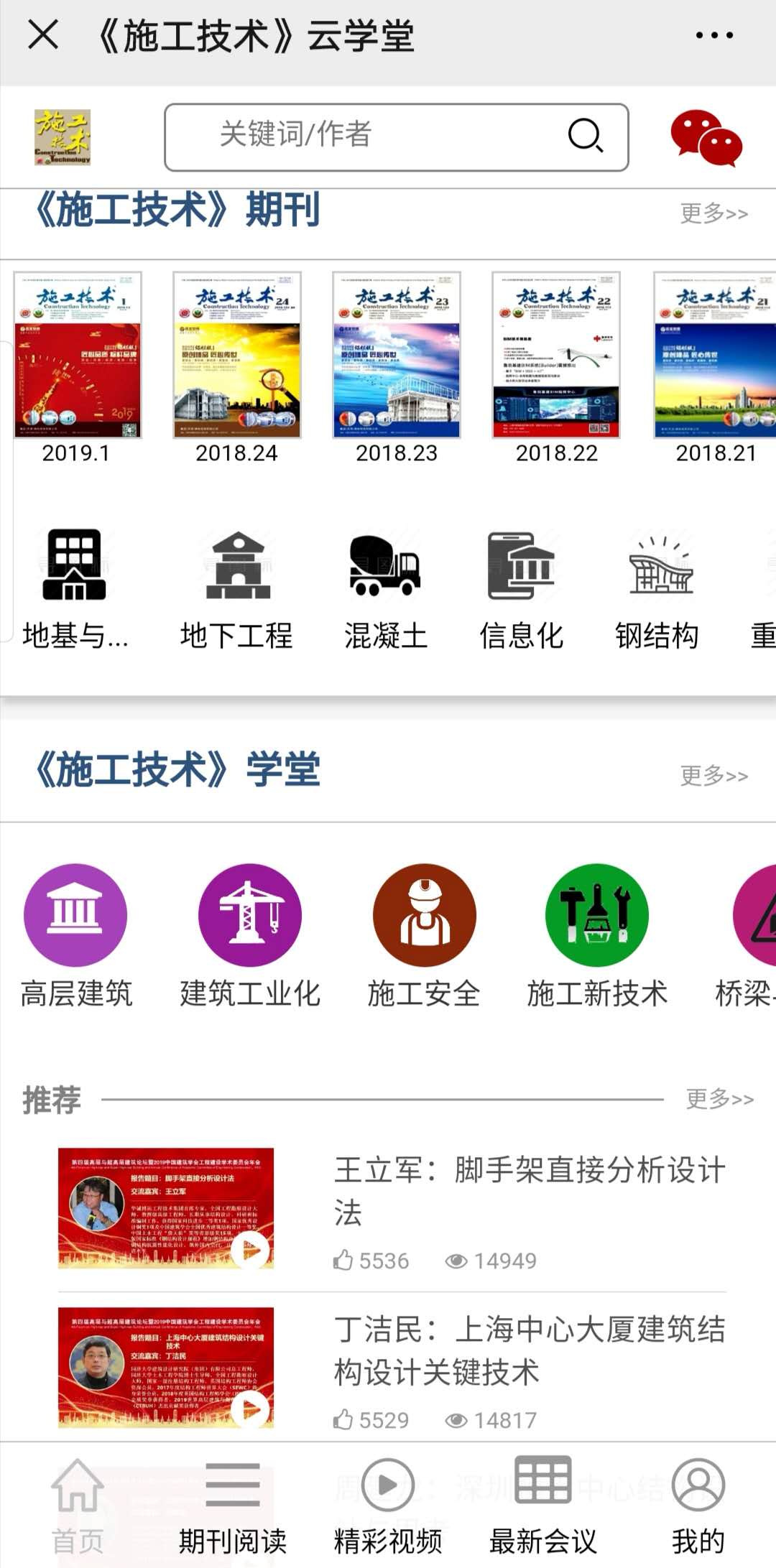 施工•云學堂是《施工技術》雜志社推出的拳頭產品,內含《施工技術》電子刊、《施工技術》主/承辦會議視頻及課件、工程技術專項培訓、《施工技術》媒體和理事聯盟等!作為《施工技術》雜志社融媒體平臺,將源源不斷地為廣大工程人提供知識給養。