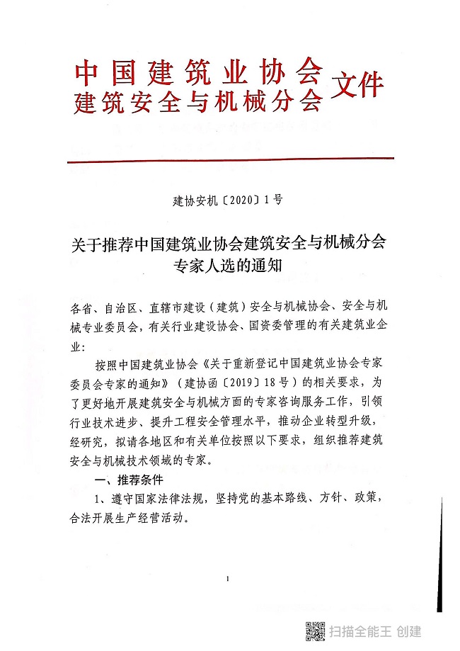 附件:1、中國建筑業協會建筑安全與機械分會專家申請表