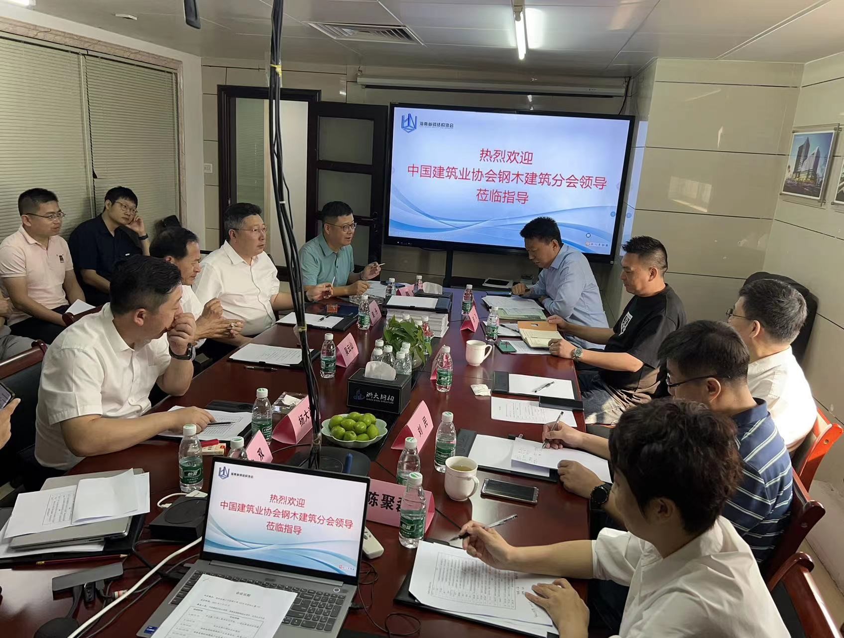 鋼木建筑分會一行實地考察了海南共享鋼構(gòu)有限責任公司,韓雙總經(jīng)理詳細介紹了該公司的產(chǎn)能、人員、業(yè)務(wù)組成和未來規(guī)劃等情況。雙方一致表示,在當前形勢下,協(xié)會之間要促進行業(yè)信息交流,加強協(xié)作聯(lián)動,期待兩家協(xié)會同心攜手、共謀發(fā)展,共同為行業(yè)高質(zhì)量發(fā)展做貢獻。