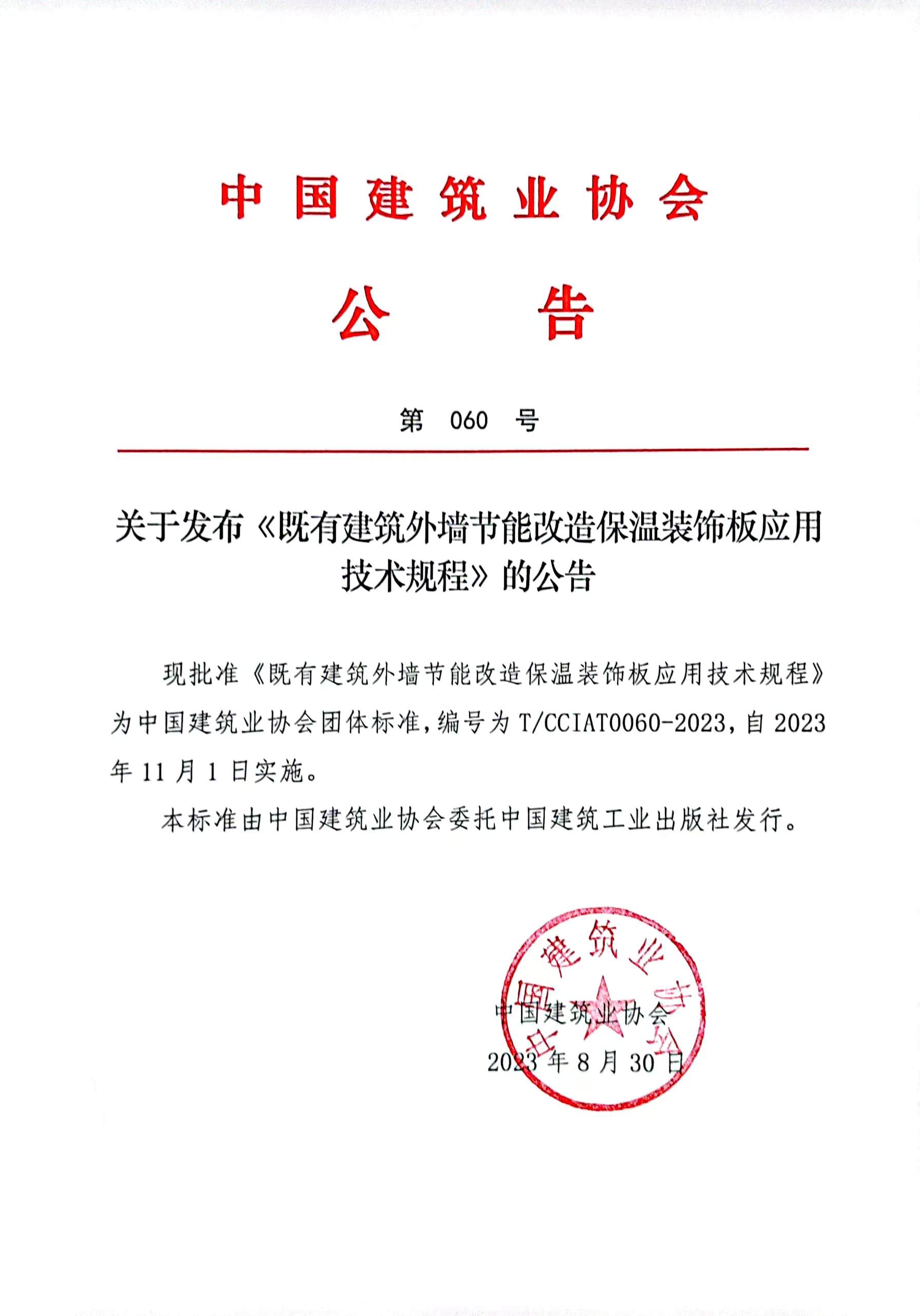 關于發布《既有建筑外墻節能改造保溫裝飾板應用技術規程》的公告