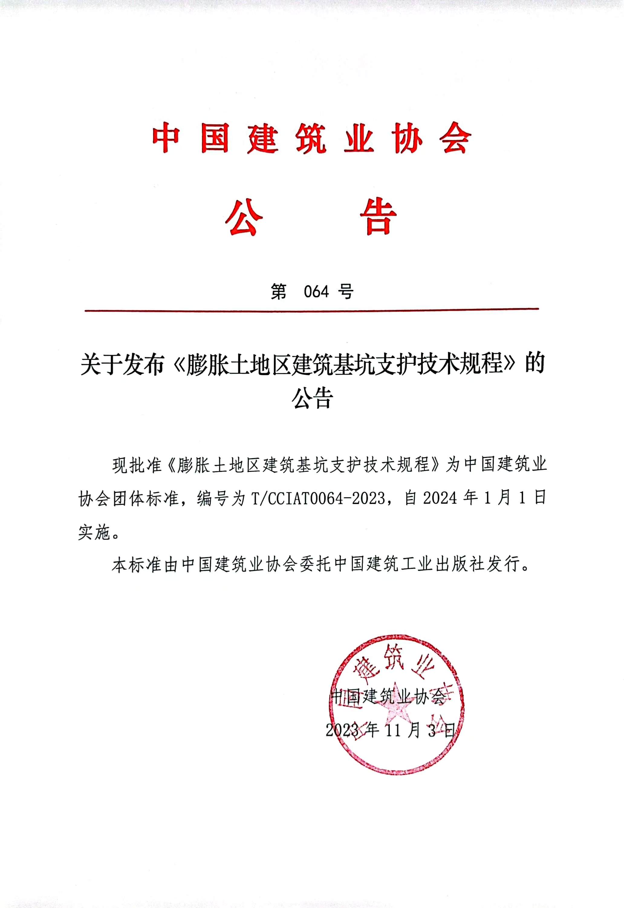 關于發(fā)布《膨脹土地區(qū)建筑基坑支護技術規(guī)程》的公告