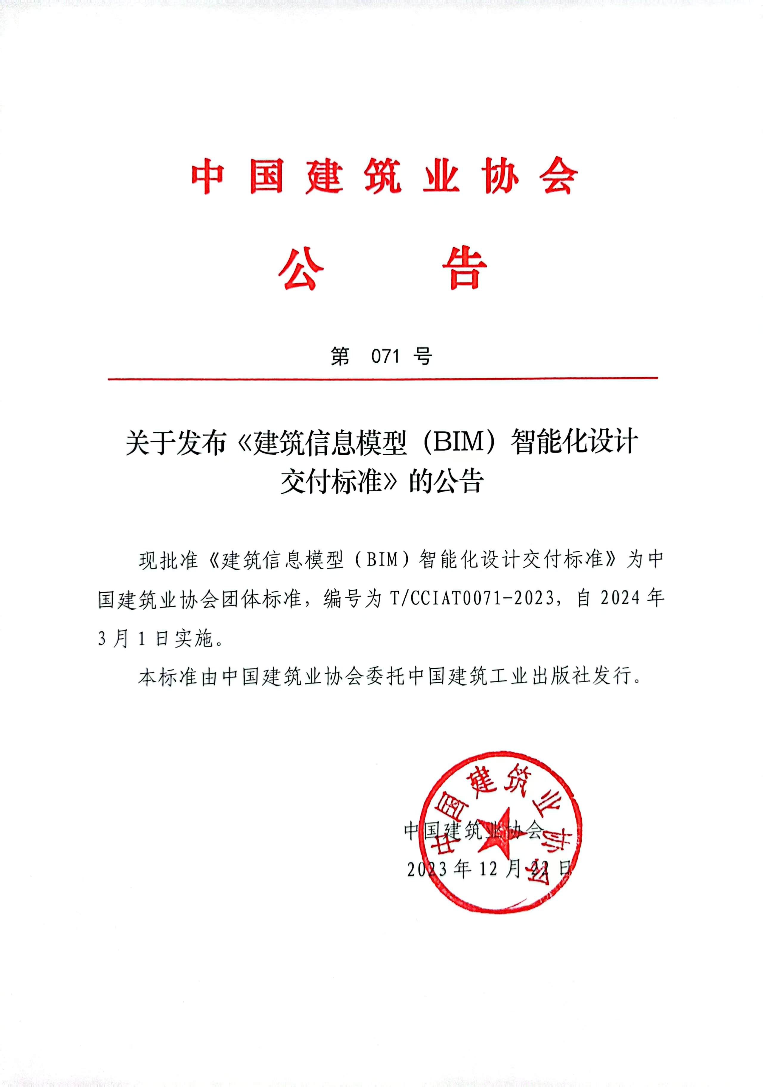 關于發布《建筑信息模型(BIM)智能化設計交付標準》的公告