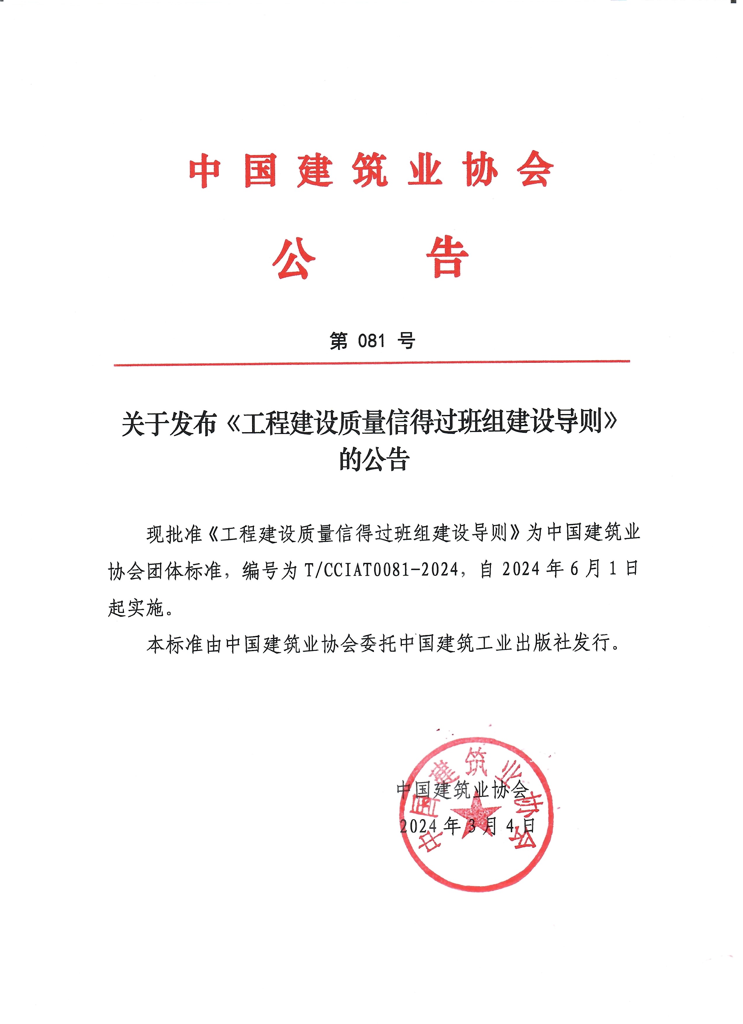 關(guān)于發(fā)布《工程建設(shè)質(zhì)量信得過班組建設(shè)導(dǎo)則》的公告