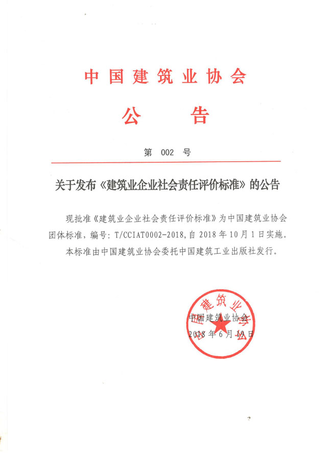 關于發(fā)布《建筑業(yè)企業(yè)社會責任評價標準》的公告