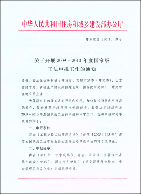 附件1:2009~2010年度國家級(jí)工法推薦匯總表
