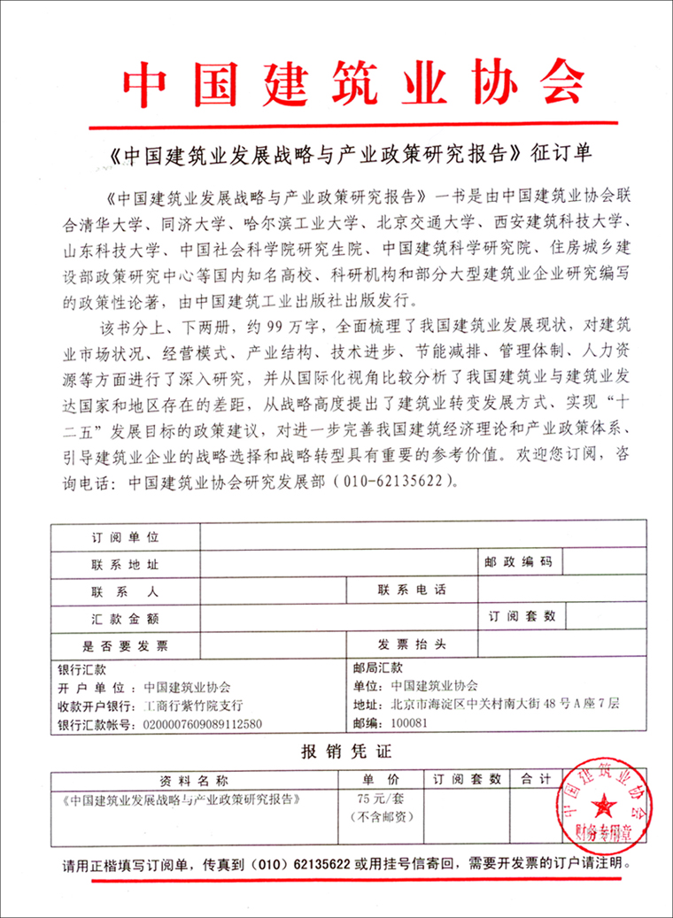 《中國(guó)建筑業(yè)發(fā)展戰(zhàn)略與產(chǎn)業(yè)政策研究報(bào)告》征訂單