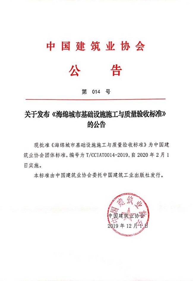 關于發布《海綿城市基礎設施施工與質量驗收標準》的公告
