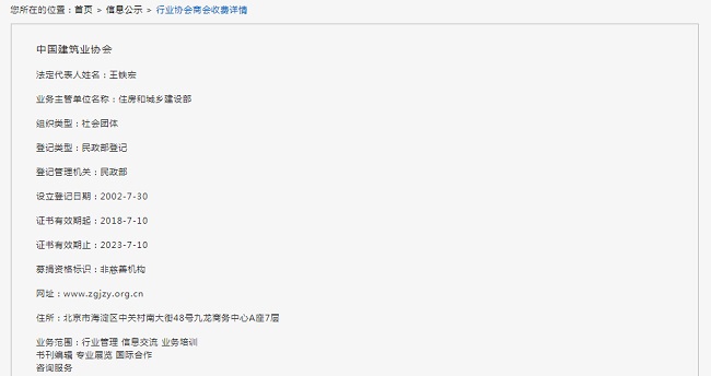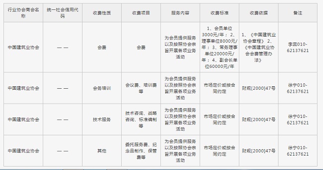 中國建筑業協會收費詳情公示