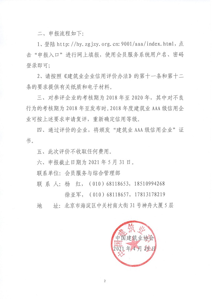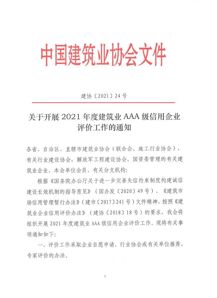 關于開展2021年度建筑業AAA級信用企業評價工作的通知