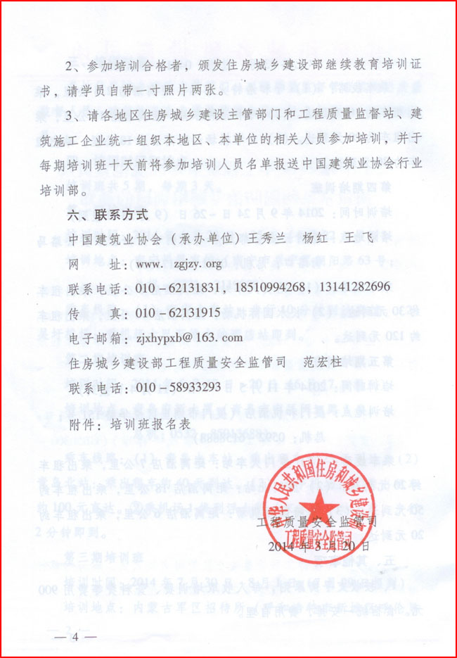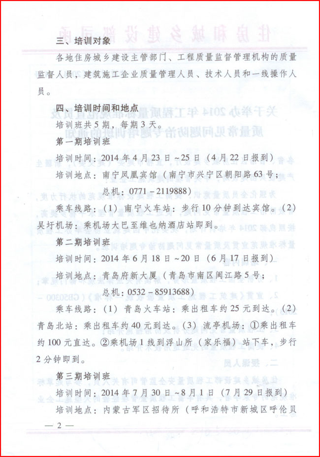 附件:關于舉辦2014年工程質量標準規范宣貫及質量常見問題防治專題培訓班的通知
