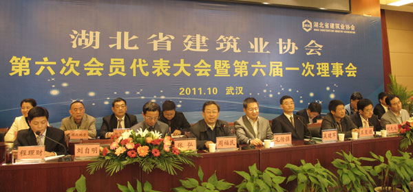 會議聽取并通過了湖北省建筑業協會第五屆理事會的工作報告、財務報告、修改章程及關于第六屆屆理事會組成方案的說明,表決通過了行業自律公約,選舉產生了第六屆理事會(理事208名)和監事會(監事5名)。在隨后召開的六屆一次理事會上,選舉產生了常務理事會(常務理事69名),選舉吳建軍(第五屆理事會會長、武漢建工集團董事長)任會長,選舉譚先康、劉成先、程理才等16人任副會長,選舉吳滌清(第五屆理事會秘書長,原省建設廳處長)任秘書長,選舉周丹(第五屆監事會主任,省住房城鄉建設廳處長)任監事會主任。