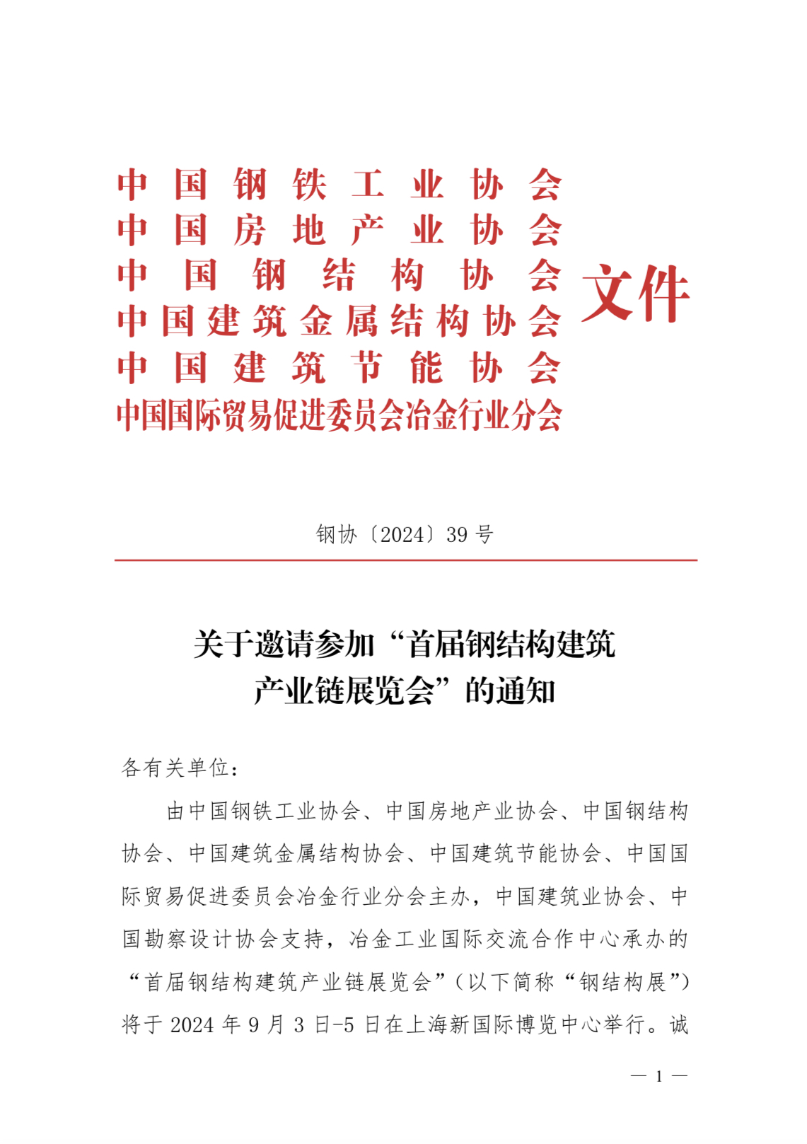關(guān)于邀請(qǐng)參加“首屆鋼結(jié)構(gòu)建筑產(chǎn)業(yè)鏈展覽會(huì)”的通知