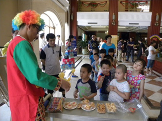 小丑叔叔給小朋友們送出的形態各異的氣球,深得兒童的喜愛,孩子們爭相領取自己喜愛的玩偶,現場氣氛十分熱烈。另一邊的馬克杯DIY現場,家長與孩子們正在親密拍照,并由專業的工作人員印在馬克杯上,以留住這特別日子里的美好時刻。