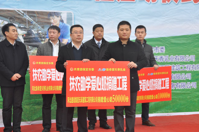 河北建設集團天辰公司捐贈代表在啟動儀式上表示:“扶農助學”愛心奶捐贈工程是體現社會公益的民心工程,是功在當下、利在未來的愛心工程。天辰公司作為一家有著強烈責任感的企業,能夠為“扶農助學”愛心工程增添一份力量,為青少年健康成長做出貢獻,是企業的榮譽,更是義不容辭的責任。天辰公司將充分展示公益熱情和社會愛心,為保定、為社會發展貢獻力量。