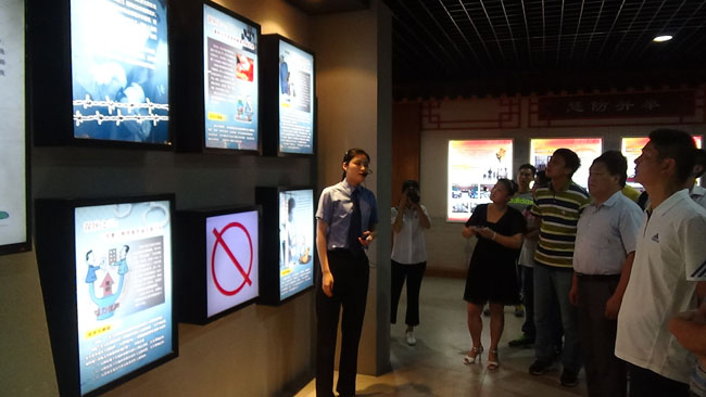 進(jìn)入教育基地的大門,地面上赫然一堆電子投影的楓樹葉,走上去,楓樹葉自動(dòng)散去,下面露出一個(gè)大大的“正”字。解說(shuō)員說(shuō),只有踏 “正”才是國(guó)家黨員干部的安身立命之本。這種特色的教育形式大家紛紛表示贊賞。
