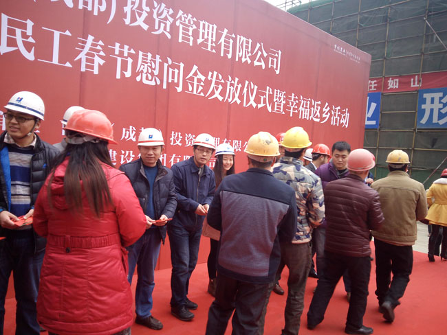 河北建設集團成都分公司、首創(成都)投資管理有限公司等相關負責同志出席歡送儀式,共同表達對農民工兄弟的感謝之情。他們親手為農民工兄弟們包好過年的紅包,祝福他們新的一年紅紅火火,財源廣進。該集團首創嬌子一號項目部也不甘落后,出資租用了數輛大巴車護送農民工兄弟安全返鄉。