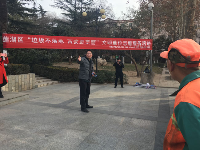 在活動現場,區文明辦相關負責人首先介紹了開展“垃圾不落地、西安更美麗”的重要意義,號召大家積極貫徹王永康書記“煙頭革命”精神,從我做起、從身邊的小事做起,主動參與到城市治理中來,共同維護我們美麗西安的大環境。各文明單位要以“煙頭革命”為契機,積極倡導無煙辦公、無煙單位,以實際行動散播社會文明。隨后,文明單位代表宣讀了《倡議書》,號召大家從我做起,做文明城市鞏固提升的宣傳者、參與者與實踐者。