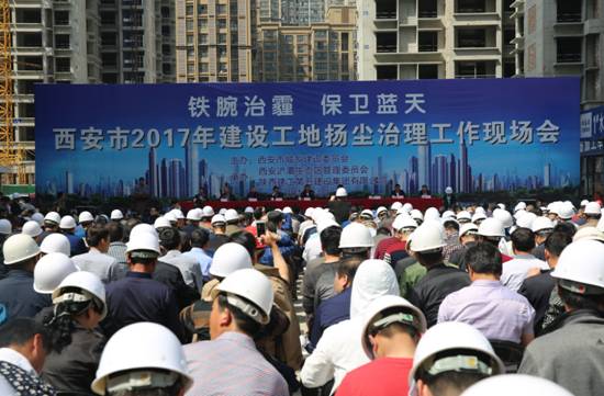 西安市2017年建設(shè)工地揚塵治理工作現(xiàn)場會在陜建五建集團浐灞?新都匯項目順利召開