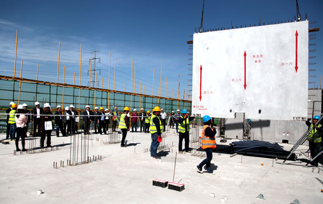 4月21日下午,第十四屆中國(西安)國際建筑節能及新型建材展覽會裝配式建筑現場觀摩會,在陜建八建集團施工總承包的陜西建筑產業現代化PC工廠一期項目宿舍樓舉行,吸引了業內800余人觀摩學習。