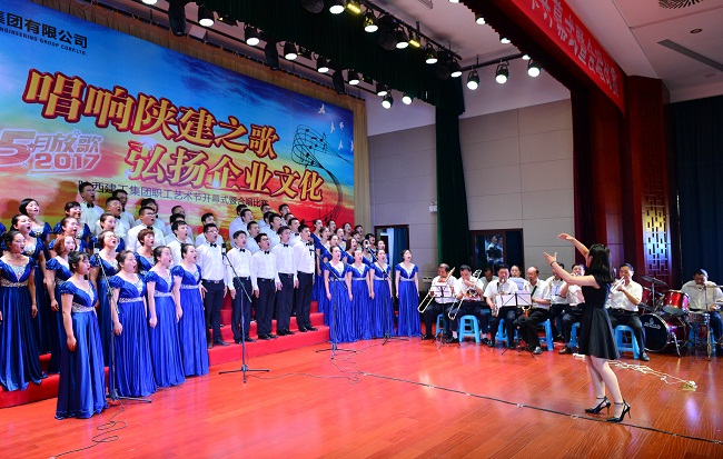 根在長安,夢在天涯,夢在天涯,一路風塵,四海為家,四海為家;建高樓,筑廣廈,造福萬家;修大道,架橋梁,連同天下......5月19日,陜西建工集團職工藝術節開幕式暨合唱比賽在西安拉開帷幕,來自陜建集團25家單位、1500余名職工參加觀看了比賽。陜建八建集團組織56名職工組成合唱團參加了比賽,并在25個合唱團中評比排名第八名,獲得二等獎。