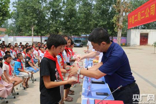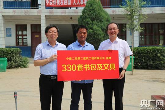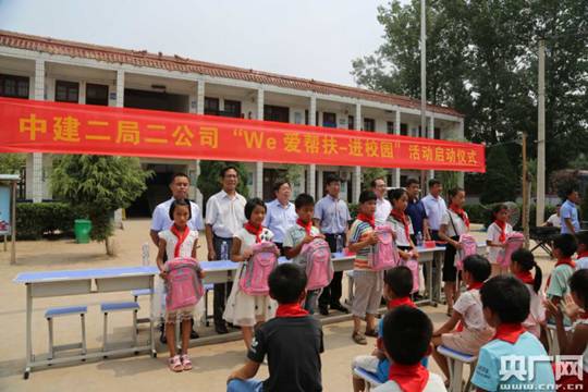 一場(chǎng)由中建二局第二建筑工程有限公司(下面簡(jiǎn)稱(chēng)中建二局二公司)與蘭考縣教體局聯(lián)合開(kāi)展的“we愛(ài)幫扶—進(jìn)校園”活動(dòng)啟動(dòng)儀式在十點(diǎn)整在此拉開(kāi)序幕。中建二局二公司的員工們親自將2000冊(cè)課外讀物、100套課桌椅、300多個(gè)書(shū)包文具送到了孩子們的手中,并幫助他們安裝好乒乓球桌,耐心指導(dǎo)糾正孩子們的橫直拍握法,企業(yè)負(fù)責(zé)人鄭重接過(guò)由公司會(huì)同當(dāng)?shù)卣畬?shí)地走訪調(diào)查最終確定的貧困生“一對(duì)一”幫扶名單,并裝進(jìn)特別準(zhǔn)備的檔案袋,并現(xiàn)場(chǎng)封存好。