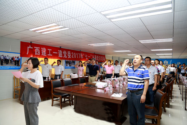 為了慶祝建黨96周年,扎實推進公司“兩學一做”學習教育常態(tài)化,進一步增強黨組織的凝聚力和戰(zhàn)斗力,激勵黨員堅定愛黨、信黨、跟黨走的理想信念。6月23日,廣西建工一建黨委在第一分公司承建的廣西安職院項目開展2017年“七一”主題黨日活動。活動上,公司黨委書記、董事長宣布廣西建工一建黨委“互聯(lián)網+”黨建平臺正式啟用,并為全體黨員上黨課;公司2016年先進基層黨組織作經驗交流發(fā)言。