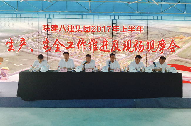 6月30日上午,陜建八建集團2017年上半年生產、安全工作推進暨現場觀摩會在渭南市閆村安置項目召開。集團總經理章輝作重要講話,集團副總經理帖華總結上半年生產安全工作,安排部署下半年工作。集團副總經理、總工程師張長虹主持會議。各分公司(工程部)總經理、主管生產副總、生產科長、安全科長200余人參加會議。