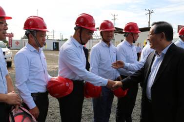 在項目建設現(xiàn)場,萬鋼副主席與現(xiàn)場施工技術人員親切握手,了解他們的工作生活情況,感謝大家為中國援助事業(yè)付出的積極努力。集團援利比里亞政府辦公樓項目施工技術組組長高元明向萬鋼副主席一行全面介紹了項目基本概況和施工進展情況。高元明表示,該項目是利比里亞國家重點建設工程,得到了政府各級領導的高度重視,江蘇省建將不辱使命,持之以恒,將該項目打造成具有中國特色的援助工程,為中非友好和兩國友誼添磚加瓦。