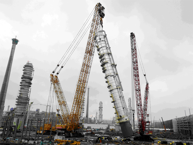 12月9日,浙江省工業設備安裝集團有限公司第五分公司承建的浙江石油化工有限公司4000萬噸/年煉化一體化項目一期芳烴裝置苯甲苯塔吊裝順利完成。