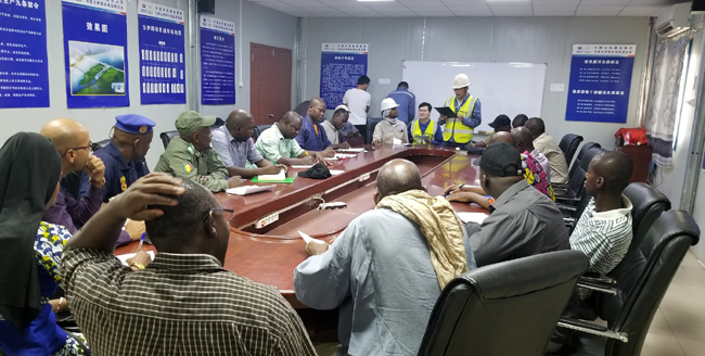 檢查團先參觀了項目營地,干凈整潔、消防設施齊全的營地給他們留下了深刻的第一印象,他們對項目標準化管理及安全管理給予了充分肯定。