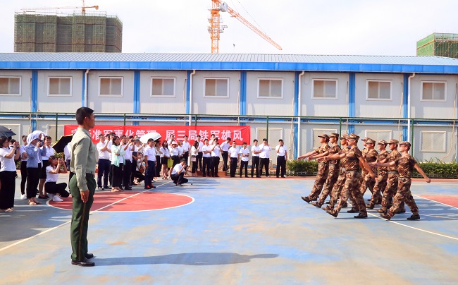 基礎公司從準軍事化管理的基本做法、融合管理、主要成效和提檔升級等四個方面介紹了基礎公司準軍事化管理的亮點工作,播放了軍訓短視頻,獲得參培人員的一致肯定。當日下午,全體參培人員到分公司光谷地下空間項目進行現場觀摩。項目執行經理介紹了項目基本情況,全體人員依次觀看了項目臨建布置、黨員活動室、職工書屋、宿舍內務管理、四星級食堂等。項目還向全體參觀人員進行了軍姿、隊列等準軍事化訓練展示。