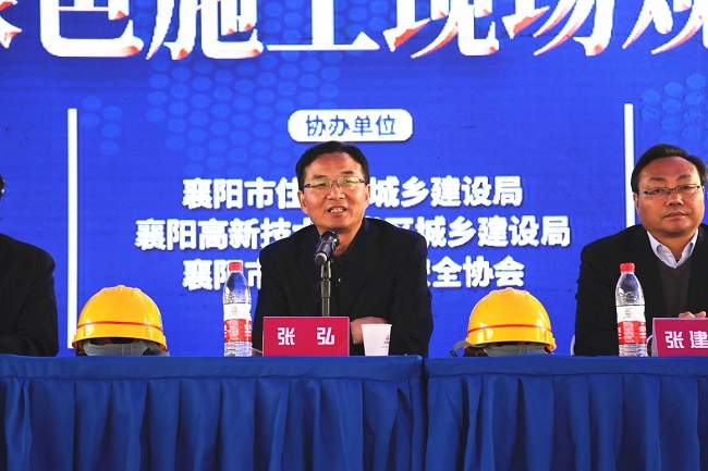 湖北省住建廳黨組副書記、副廳長張弘,湖北省質安總站副站長楊碧華,襄陽市副市長張建友、中建三局安監部執行總經理倪秋鴻,中建三局二公司副總經理鄭承紅,安全總監方發齊,荊州市、十堰市、襄陽市、隨州市、荊門市等鄂西北地區市住建系統負責人及建設工程代表等500余人參加了此次觀摩會。