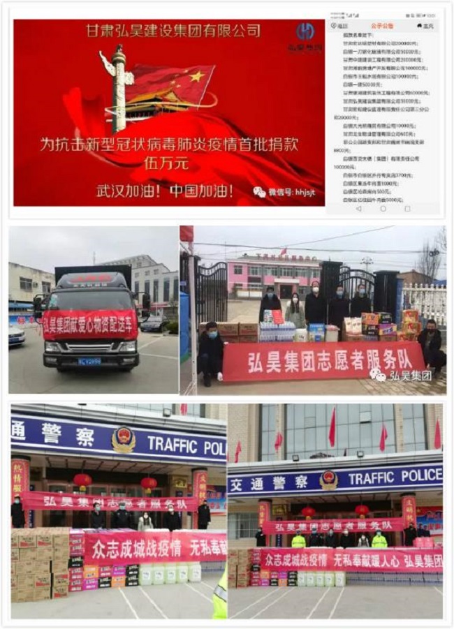 在此期間,全體弘昊人認真履行防疫工作的職責,從小事做起,為本次抗擊疫情貢獻微薄之力。先后承擔了蘭州大學第一醫(yī)院西站院區(qū)維修改造項目施工任務,積極參加社會公益活動,為抗擊疫情捐款捐物,深入了解員工的出行及健康狀況,一起助力武漢,為中國加油。