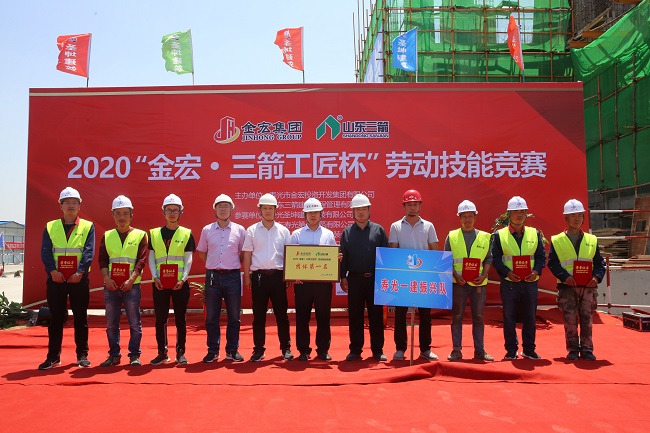 5月22日上午,壽光建設集團山東壽光第一建筑有限公司參加了“金宏•三箭工匠杯”勞動技能競賽,由6名熟練技術工人組成“壽光一建振興隊”,他們勇挑重擔,敢于拼搏,運用嫻熟的技能,發揮豐富的臨戰經驗,在30多名參賽強手面前,展現了壽光一建公司的工匠風采,賽出了精神,賽出了水平,在架子工、砌筑工和電工三個比賽項目比拼中均取得優異成績,最終獲得綜合評分團體第一名及腳手架組金獎、配電箱接線組銀獎、墻體砌筑組銅獎的好成績。