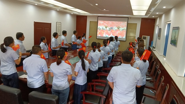 當空中護旗梯隊拉開飛行慶祝表演序幕,直升機、戰斗機分別組成“100”“71”字樣掠過長空,15架殲-20飛機組成3個梯隊呼嘯而過,教練機拉出10道彩煙,在公司各個會場觀看大會直播的每一個人,眼睛中閃爍著滿滿的驕傲和自豪,用心感受中國共產黨100年來砥礪奮進的光輝歷程;當儀仗官兵隊伍進入天安門廣場,他們堅毅的面龐、整齊堅定而充滿力量的步伐,迸發出“保家衛國、護你周全”的安全感,讓公司每一名黨員干部職工震撼;當五星紅旗在天安門廣場冉冉升起,大家和大會現場的觀眾同聲高唱國歌,每個人將難以掩飾的心潮澎湃化作雄壯的歌聲,在觀看會場久久回蕩;當習近平總書記講到“中國人民也絕不允許任何外來勢力欺負、壓迫、奴役我們,誰妄想這樣干,必將在14億多中國人民用血肉筑成的鋼鐵長城面前碰得頭破血流”時,大家情不自禁一起熱烈鼓掌,表達了對黨、對祖國真摯的熱愛。