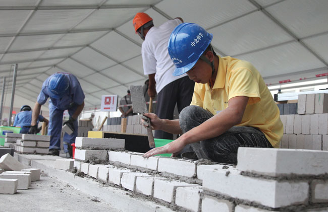 7月21日至23日,2014年中國技能大賽——“中北華宇杯”第43屆世界技能大賽瓷磚貼面和砌筑項目全國選拔賽暨全國建設行業職業技能競賽在北京順義區隆重舉行。原建設部副部長、中國建筑業協會會長鄭一軍,住房和城鄉建設部人事司副司長陳付,中國海員建設工會全國委員會副主席姚久強,北京市政府副秘書長徐波,北京市順義區人民政府區長盧映川,中國建筑業協會副會長徐義屏、吳濤,中國建筑業協會建筑企業經營和勞務管理分會劉錦章,以及人力資源和社會保障部職業能力建設司、中國就業培訓技術指導中心、北京市住房和城鄉建設委員會、北京市建筑業聯合會等有關單位領導出席開、閉幕式講話,并向獲獎選手頒獎,大賽開閉幕式分別由中國建筑業協會副會長徐義屏、中國建筑業協會建筑企業經營和勞務管理分會會長劉錦章主持。