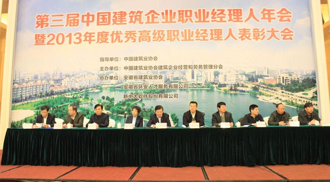 12月6日,由中國建筑業協會建筑企業經營和管理分會主辦的第三屆中國建筑企業職業經理人年會暨2013年建筑企業優秀職業經理人表彰大會在安徽池州舉行。